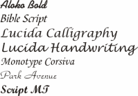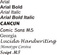 The most popular fonts are Arial, Cancun, Comic Sans, Georgia, Lucida Handwriting, Monotype Corsiva and Script MJ.