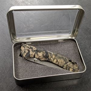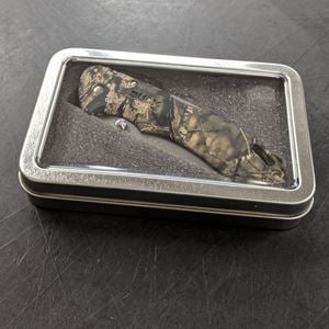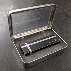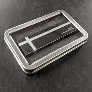 Gift tins are metal, often windowed allowing the recipient to see what is inside before opening.