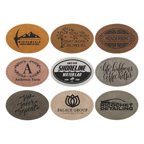 The leatherette material is 1.57mm thick - enough to feel substantial without adding unnecessary stiffness to the garment. The laserable surface takes engraving with consistent contrast, whether you're running a detailed logo or clean text. The 3" x 2" oval dimensions keep things proportional on jackets, hats, bags, and uniform pieces. Available in a range of elegant leather tones to fit your specific brand direction.