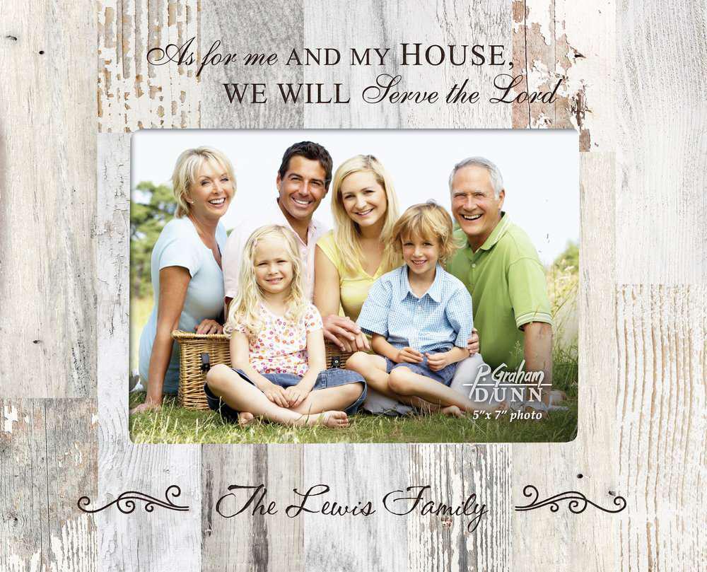 Spotlight that family devotion with a Scriptural reminder on this unique pallet style frame. Customize the laser engraved text on the faux wood design for a fresh and contemporary look. That favorite family photo and the Scripture text make a home decorating accent with meaning.